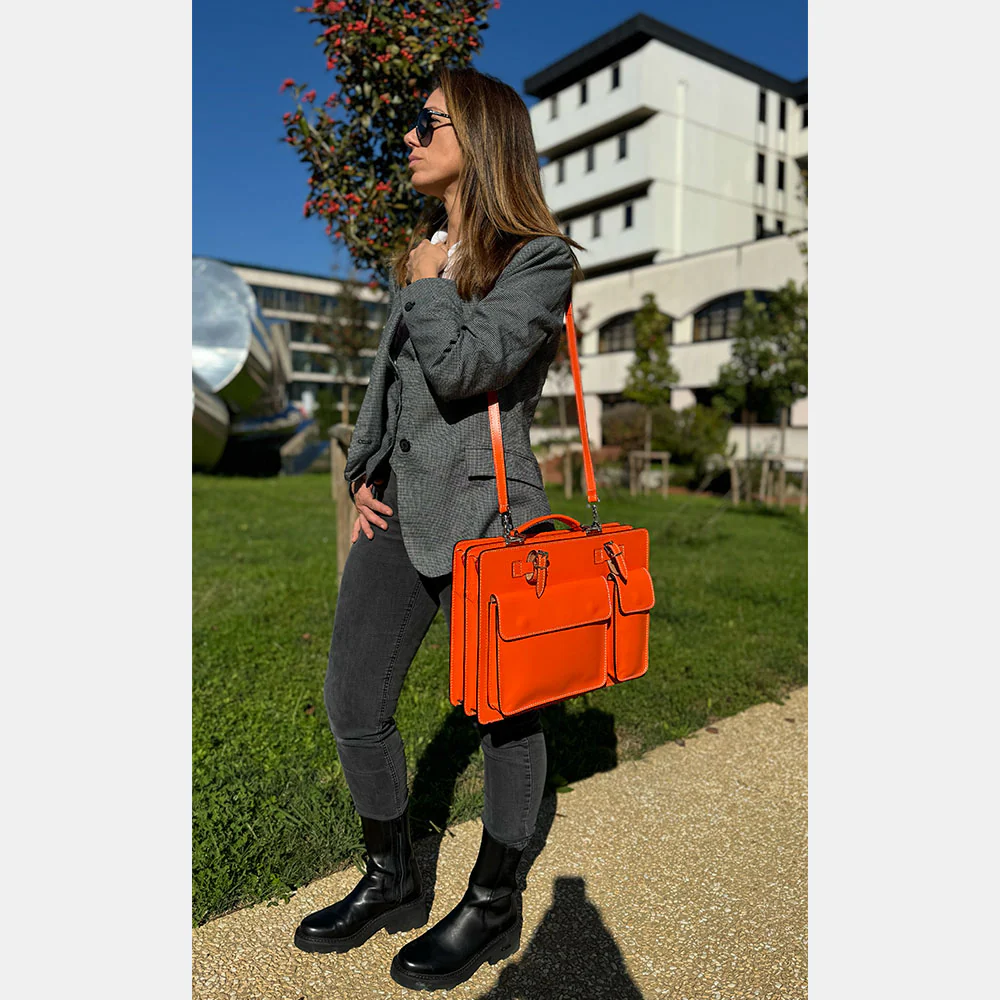 Borsa da Lavoro in Pelle Arancione VIAVERDI Made in Italy - Porta Ombrelli e Pc 15.6