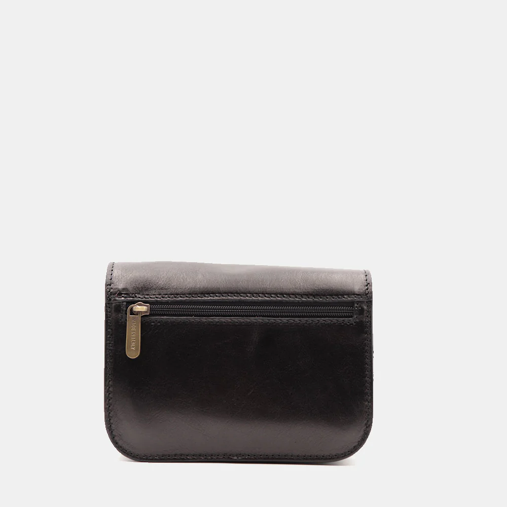 Borsa piccola a tracolla ViaVerdi linea Firenze in pelle nera 100% Made in Italy realizzata artigianalmente dai nostri maestri pellettieri in Toscana.
